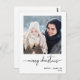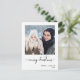 Simple single photo Christmas postcard featuring a modern calligraphy merry Christmas heading image, the couples names and year's date. The back of the postcard is prepared for the couples address and message. Great for someone who likes modern minimalist photo postcards.