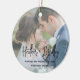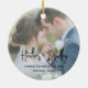 Modern style Christmas ornament featuring a simple and minimal design with your names in an elegant script typography and your wedding details in a minimalist sans serif font over your favourite photo. The design has a sheer overlay to allow the text to show up over your picture and may be removed in the design editing tool. This elegant ornament makes a great gift for a newlywed couple for their first Christmas married.