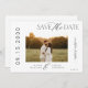 Elegant minimal design simple black and white script custom photo wedding save the date card.