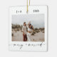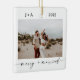 This minimalist Christmas holiday ornament features your wedding photos and modern calligraphy. A beautiful keepsake for your first Christmas as a married couple!