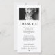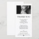 Minimalist and clean thank you card for a memorial service featuring black text against a plain white background, tasteful fonts, and a photo of your loved one.