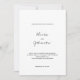 This wedding invitation features a clean and minimalist design with a white background, modern typography, and handwritten-style script for the couple’s names. The front emphasizes simplicity and elegance, while the back showcases a black-and-white photo of the couple framed by a white border, adding a personal and contemporary touch.