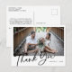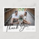 Modern Wedding Thank You Postcard featuring single wedding photo, typography script thank you, names on the front. Personalise further with your message on the back. Perfect for thanking your family and friends for celebrating your wedding with you