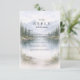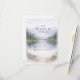 A serene and atmospheric design inspired by misty mountain landscapes and quiet forest scenery. Soft watercolor layers of pine trees and distant hills fade gently into the background, creating depth and a calm, romantic mood. The muted palette of sage green, cool grey, and soft ivory gives the design a refined, nature-driven elegance—perfect for couples drawn to minimalist aesthetics and intimate outdoor celebrations.