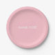 Minimalist pink and white custom name text monogram solid plain modern elegant girly chic party Paper Plates.