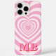 Pink Minimalist Modern Initial Monogram Phone Case. Create your own personalised iPhone Case with custom initial name and repeating heart shape pattern.