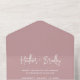 Personalised All-In-One invitations are a unique combination of both a beautifully printed custom invitation with an easy-to-tear-off perforated RSVP postcard. And they are so easy to use! You simply fold, then seal the back flap with the three included clear stickers, and mail. When your guests receive your custom invite, they just tear the perforated RSVP Card off and drop it back in the mail to you!
