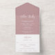 Modern all in one dusty rose pink wedding invitation featuring a simple design with your names in an elegant script typography and your event details in a minimalist sans serif font. This chic wedding invitation works well with for a spring or summer wedding.