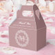 Floral Wreath Calligraphy Typography Monogram Favour Boxes in Dusty Pink and White - Stylish pink and white monogrammed favour box featuring a custom monogram, groom & bride names, last name, and wedding date templates surrounded by a bold floral line art wreath. ©sweetwhimsypaperie