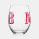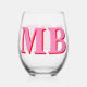 Minimalist Pink Red Modern Initial Monogram Stemless Wine Glass