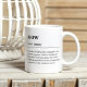 This minimalist ceramic mug features a dictionary style definition of the term “Now” in black and white minimalist typography and sophisticated design. This mindfulness quote refers to “The state of being fully engaged in the current moment, without dwelling on the past or worrying about the future” in the sense of mindfulness and awareness as in the power of Now by Eckhart Tolle. Remind yourself with every sip of your coffee to live in the present moment. This definition mug also makes a great gift for a yoga lovers, psychologists or just any friend who needs reminding.