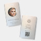 The Modern company ID photo QR Card is a sleek and professional way to showcase your employees' information, with customisable features to fit your brand. This badge includes a photo, logo, and name, all displayed in a minimalist silver background. The high-quality card is durable and long-lasting, perfect for daily use in any workplace. The customisable elements make it a versatile and practical solution for any business or organisation.