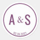 This sticker features the bride and groom initials with wedding date enclosed in a matching purple circle. Personalise the text in the template fields or click customise to select a font style, size, and colour you prefer. Great for sealing mail or favour bags.
