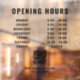Enhance your storefront with this Minimalist Business Opening Hours Window Cling, featuring sleek black typography for a modern and professional look. Designed for clarity and sophistication, this durable, easy-to-apply decal ensures customers can easily see your business hours at a glance. Perfect for offices, boutiques, salons, cafés, and more, this window cling blends seamlessly with any aesthetic while providing essential information. Made with high-quality materials, it is weather-resistant and repositionable, making it a stylish and practical addition to your business entrance.