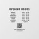 Enhance your storefront with this Minimalist Business Opening Hours Window Cling, featuring sleek black typography for a modern and professional look. Designed for clarity and sophistication, this durable, easy-to-apply decal ensures customers can easily see your business hours at a glance. Perfect for offices, boutiques, salons, cafés, and more, this window cling blends seamlessly with any aesthetic while providing essential information. Made with high-quality materials, it is weather-resistant and repositionable, making it a stylish and practical addition to your business entrance.