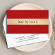 Minimal customisable business card template with red background and faux gold stripe. Elegant and minimalist design. Perfect for beauty salon, hair stylist, hairdresser.