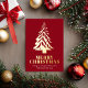Minimalist Red Gold Tree Merry Christmas Holiday Card