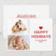 Minimalist Red Happy Holidays 2 Photo Christmas Holiday Card