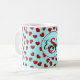 Minimalist Red Hearts on Pastel Blue Custom Name Coffee Mug