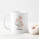 Enjoy your favorite hot beverage in this simple yet elegant coffee mug, featuring a beautiful minimalist line-art illustration of red poppies with a dark green stem. This mug is perfect for flower lovers and makes a thoughtful, personalized gift for any occasion. Customize it with a name (like the "Charlotte" shown) to make it uniquely yours! All colors and font are editable