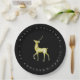 Modern minimalist black and white Christmas paper plates designed with a hand-painted watercolor gold reindeer and modern typography. Personalise for stylish gifting holiday treats