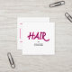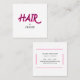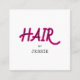 For hair stylists and colorists, a minimalist business card in a square style with cool, retro typography featuring "HAIR" in pink and black. Reverse side has your basic information with ability to add or delete text lines of your preference, surrounded by an edgy pink border. Great for freelance and independent artists. Message me if formatting assistance needed!
