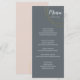 Large and luxurious rings decorate your minimal wedding menu, lending them a subtly sophisticated finish. Each course is outlined below in formal fonts against a muted backdrop of cool or earthy tones. On the back, your initials appear against a solid block of colour that complements your chosen scheme.