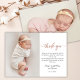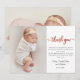 Minimalist Rose Gold Script Baby Photo Thank You Card