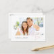 This minimalist save the date postcard features a large horizontal photo and casual rose gold script. On the front of the postcard, modern calligraphy reads "Save the Date" in the lower right corner. The pink gold lettering partially overlays a landscape-orientation photo. Add your names, wedding date, and wedding location to complete the customisation on the front. The back of the postcard includes a template where you can add additional details like your wedding website.