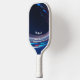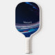 This modern pickleball paddle design features a night blue running lights design, with your name in bold white text for a look that is simple and stylish, yet professional.