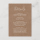 Designed to coordinate with our Minimalist Rustic Collection, this customisable details enclosure card features a white classic font on a kraft effect background. This is a simple and minimalist rustic collection, very versatile and suitable for any wedding season. For more advanced customisation of this design, e.g. changing layout, font or text size please click the "CUSTOMIZE" button above. Please contact me for any questions!