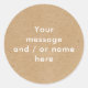 Minimalist Rustic Kraft Personalised Classic Round Sticker