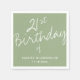 Modern 21st birthday party paper napkins with a minimalist typography design. These napkins have a sage and white colour scheme. Simply add your information, add these napkins to your cart, then enjoy this milestone birthday!