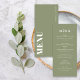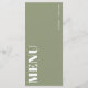 Looking for an elegant wedding menu? Look to our Minimalist Sage Green Bold Modern Wedding Menu. Featuring bold calligraphy that adds a touch of sophistication, this sage green menu offers a clean, simple look. This minimalist wedding menu has a modern twist bound to captivate those with an eye for subtle sophistication.