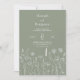 A minimalist sage green background with white line-art wildflowers, perfect for elegant modern wedding invitations.