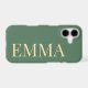 Elevate your everyday tech with this sophisticated and minimalist iPhone 17 case. Featuring a rich, earthy sage green background, this design showcases a bold vertical serif typeface in a soft cream-colored palette. The clean lines and timeless typography make it a perfect accessory for those who appreciate a "quiet luxury" aesthetic.