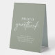 Minimalist Sage Green Modern Photo Guestbook Table Tent Sign. The word 'guestbook' is not editable. Can be used for weddings, bridal showers, baby showers, etc.