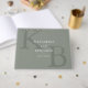 Minimalist personalised wedding guest book personalised with modern typography monogram initials in sage green colour design.