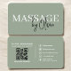 Promote your massage therapy or wellness practice with this sage green business card, designed to convey calm, trust, and professionalism. Featuring a built-in QR code, this card allows clients to instantly access your booking page, website, or contact information. The soft green tone creates a soothing, natural look ideal for massage therapists, spa professionals, bodywork practitioners, and holistic wellness providers. Clean, print-ready layout ensures clarity and a polished presentation.
