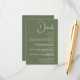 Keep your guests informed with the Minimalist Sage Green Wedding Details Enclosure Card. Featuring a soft sage green background, the front provides space for all essential wedding details, ensuring your guests have everything they need for your big day. The back adds a personal touch with the bride and groom’s initials and wedding date in elegant white text. Perfect for modern, romantic, nature-inpired or boho weddings, this enclosure card combines practicality with a touch of charm, making it a beautiful addition to your wedding stationery suite.