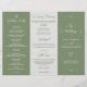 Minimalist Sage Green White Luxury Wedding Program. Dusty blue wedding programs, cheap inexpensive wedding programs, whimsical church wedding program, romantic church wedding program, luxury wedding programs, sage green background invitation, dark sage green gold white, sage green watercolor garden leaf, sage emerald green dusty blue, simplistic design clean invitation