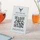 Modern and sleek, this salon QR code sign is perfect for displaying your service menu and prices with a simple scan. Designed with a clean, neutral background and customisable details, it’s ideal for placement at reception desks or styling stations. Make client interaction easier while maintaining a professional look for your salon, spa, or beauty studio.