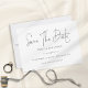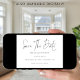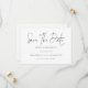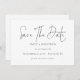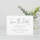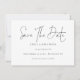 Minimalist Script Black and White Save The Date. Available digitally and printed. Simple elegance with Save The Date in a modern set script. The rest of the text you can easily personalise. Shown here in black on white however the text and background colours can be changed if you wish via the customise further option.