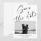 Announce your special day in modern simplicity with our Black and White Script Save the Date. This minimalist design features a classic script font that beautifully frames a cherished photo of the happy couple. The timeless monochrome palette adds a touch of sophistication to your wedding announcement. Customise the date and details to create a save the date that effortlessly captures your love story.