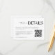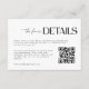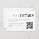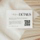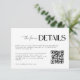 A classy and minimal black & white wedding details card, designed with script lettering, and a QR code that your guests can scan to access your wedding website.