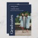 Twins graduation or double graduatio party invitation card.Two Photo of the graduate appears on the elegant grad party postcard invitation. The grad's name, school, and class year are written in casual modern black script on the back.