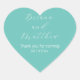 Simple minimalist script calligraphy teal heart wedding favour stickers for your wedding reception, rehearsal dinner and bridal shower.