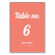 Minimalist Script Coral Pink Wedding Table Number. Add your necessary table numbers, bride and groom names, and your wedding date and location. Feel free to change fonts, background colour, text colours, etc., by clicking on "personalise this template," then "edit using design tool." Please message the designer if you wish to have changes done for you.