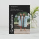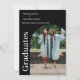 Twins graduation or double graduatio party invitation card.Two Photo of the graduate appears on the elegant grad party postcard invitation. The grad's name, school, and class year are written in casual modern black script on the back.