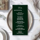 Minimalist script emerald green wedding reception Menu, It includes everything you'll need for your reception, including your first course, second course, entree, and dessert. You can customise it by including your favourite items.